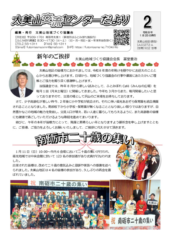 2019年4月より南砺市全域において小規模多機能型自治組織による地域活動が開始され、当地域でも拠点として公民館に「太美山交流センター」の看板が設置されました。